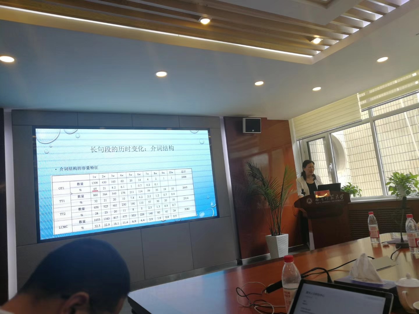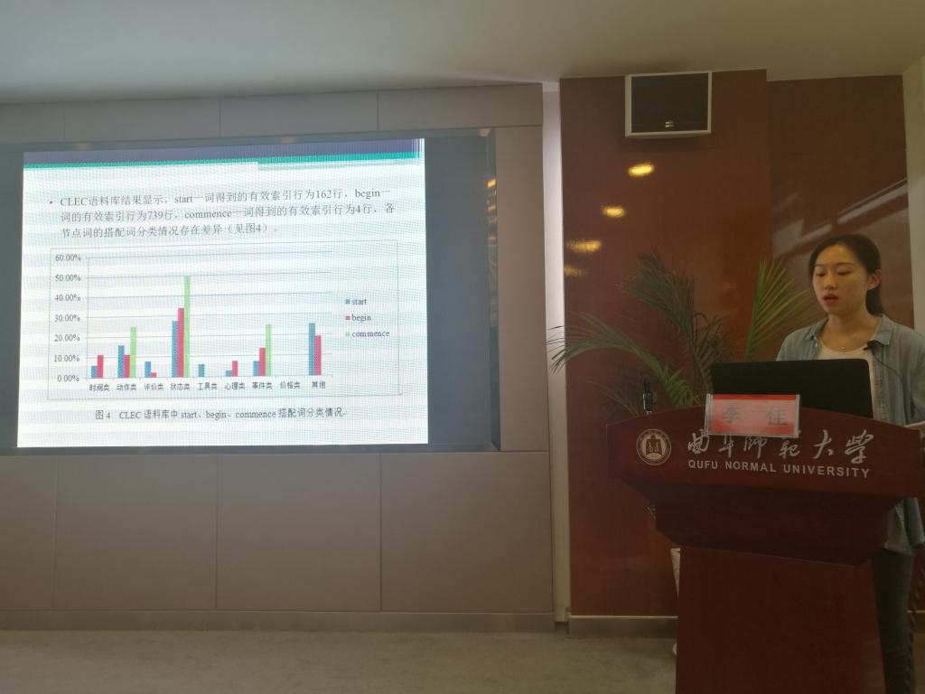 论坛发言阶段,来自北京外国语大学、河南大学、山东师范大学、《中国青年报》、青岛科技大学、福建工程学院、聊城大学、91制片厂 等国内知名研究机构的专家学者就数字人文研究这一主题进行了精彩发言。我院夏云副教授、王海燕副教授、张巍副教授以及研究生李佳同学应邀参加了此次论坛。夏云副教授以大量的数据和语料库为基础,运用英汉历时类比语料,以20世纪初期原创汉语为参照观察了英汉翻译影响现代汉语句段的方式、机制与限度;李佳以“开始”类英语同义词为例,基于语料库探讨了中国英语学习者和英语本族语者对begin、start 和commence的使用情况,考察了同义词的语义搭配行为,充分展示了我院师生的学术风采。