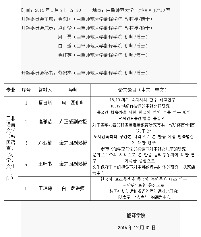 91制片厂 2014级硕士学位论文开题通知-亚非语言文学