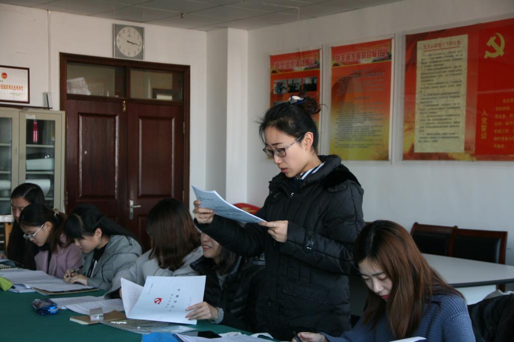本科生党员及此次申请转为预备党员的刘梦薇、赵雪纯、谭丽晨等7人参加了本次大会。会议伊始,申请转为预备党员的7名发展对象依次宣读了入党志愿书,并从对党的认识、入党动机、本人履历、家庭和主要社会关系情况等几个方面进行了汇报。然后由入党介绍人就思想、工作、学习、生活和主要优缺点等方面对发展对象进行了入党介绍。组织委员李凯老师对7名同志的政审情况作出报告。随后,与会党员对7名同志能否入党展开了充分讨论,并采取无记名投票方式进行表决。经统计,现有支部大会全票通过接收申请人为预备党员的决议。接着,新进预备党员依次踊跃对加入党组织进行了表态,表示将积极向身边的优秀党员学习,早日成为优秀的正式党员。党支部书记宁晓文对7名新进党员表示了欢迎并对其提出了殷切期望。