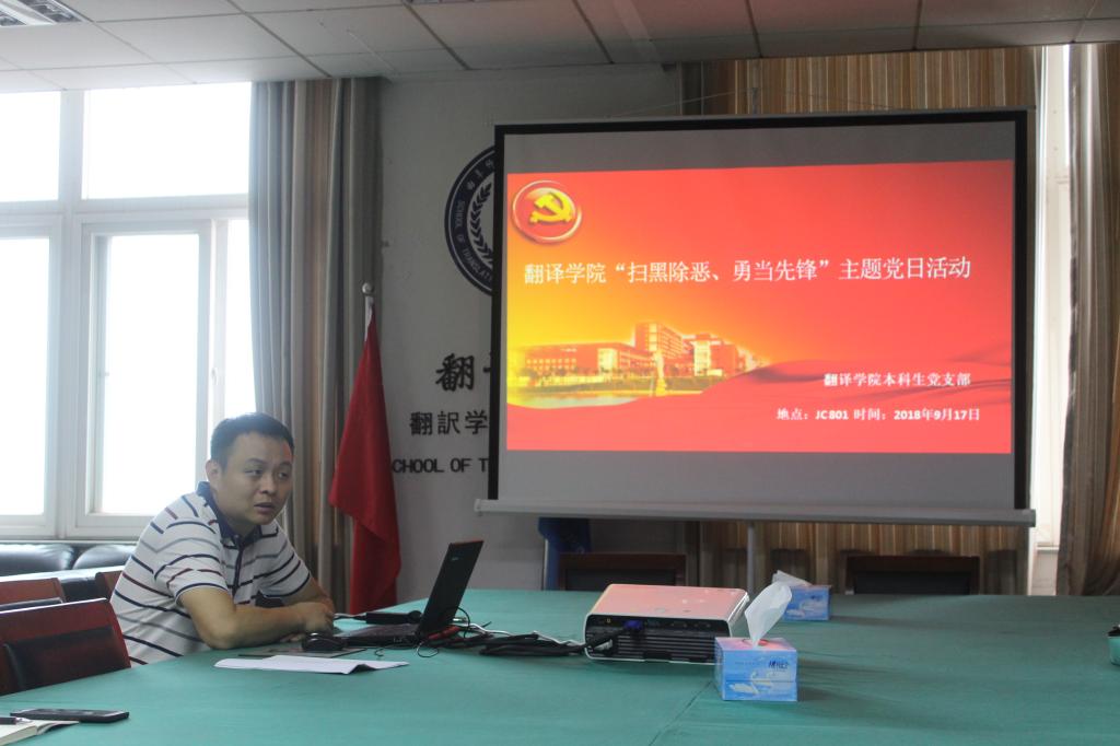 本科生党支部“扫黑除恶、勇当先锋”主题党日活动在C801举行,会议由本科生党支部书记岳峰主持。