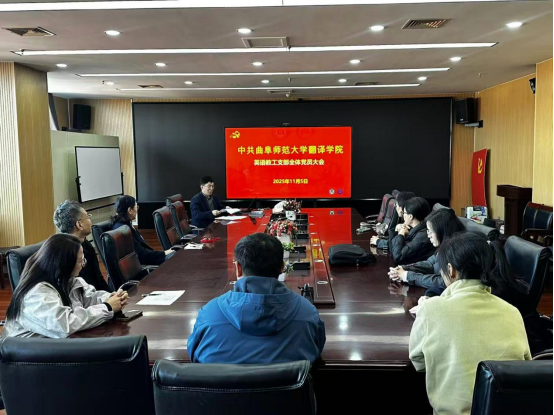 英语教工党支部成立暨第一届支部委员会选举大会在JC801会议室举行。大会由学院党委书记宋钧文主持,支部全体党员参加。