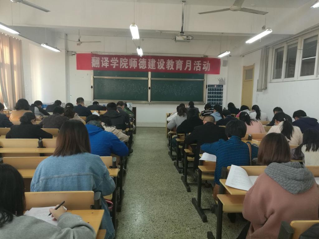 10月31日下午,我院全体教职工在日照校区JC314教室参加了全院师德法规知识考试竞赛活动,本次活动是学院分工会根据山东省教育工会《关于在全省教职工中开展师德建设教育月活动的通知》(鲁教工〔2018〕43号)和山东省教育厅《关于做好庆祝2018年教师节有关工作的通知》(鲁教师字〔2018〕11号)精神,以及学校工会《关于在全校教职工中开展师德建设教育月活动的通知》而进行的一场覆盖全院教职工的师德建设教育活动。