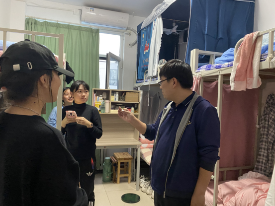 2020级辅导员王峰深入学生宿舍开展安全隐患排查工作。