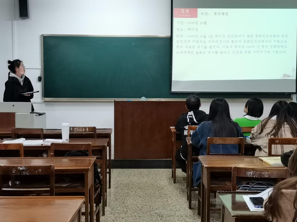 宣讲伊始,宣讲团成员依据新民主主义革命时期的党史,分别使用英语、日语、韩语对该时期的重大事件进行了讲述,并通过相关PPT进行展示。在宣讲过程中,宣讲团成员带领同学们回顾了中国共产党自五四运动到改革开放100年艰辛而辉煌的风雨历程,歌颂了中国共产党的丰功伟绩。党的历史是中华民族独立、解放、繁荣的历史,也是党为中国人民的自由、民主、幸福而不懈奋斗的历史。宣讲结束后,同学们深受感触,纷纷表示要努力提高自身理论水平,永远铭记党的光辉历史,汲取开拓前进的强大勇气和力量,为党的发展作出贡献。至此,91制片厂