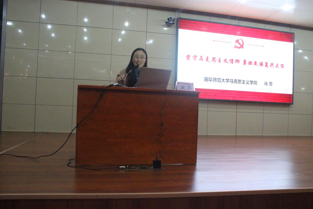 肖芳老师以“不忘初心,牢记使命,做新时代的不懈奋斗者”为主题,围绕马克思主义信仰之光、信仰之困、信仰之路三个方面做了深入的阐述。她指出,在中国,只有中国共产党才能给中国人民带来光明,才能带给中国更加美好的明天。她要求同学们做马克思主义忠实的信仰者、传播者、建设者,并且要发扬奋斗精神,做新时代的奋斗者。接着,她从树立正确的历史观、把牢信仰之路、夯实信仰三个方面向学生干部们展示了如何走好马克思主义信仰之路。肖老师希望同学们能不断培育自己的精神家园,在大风大浪面前旗帜鲜明、立场坚定。最后,肖芳老师以“为天地立心,为生民立命,为往圣继绝学,为万世开太平”为结语,激励同学们传承弘扬马克思主义,不忘初心、牢记使命,成为担当民族复兴大任的时代新人。