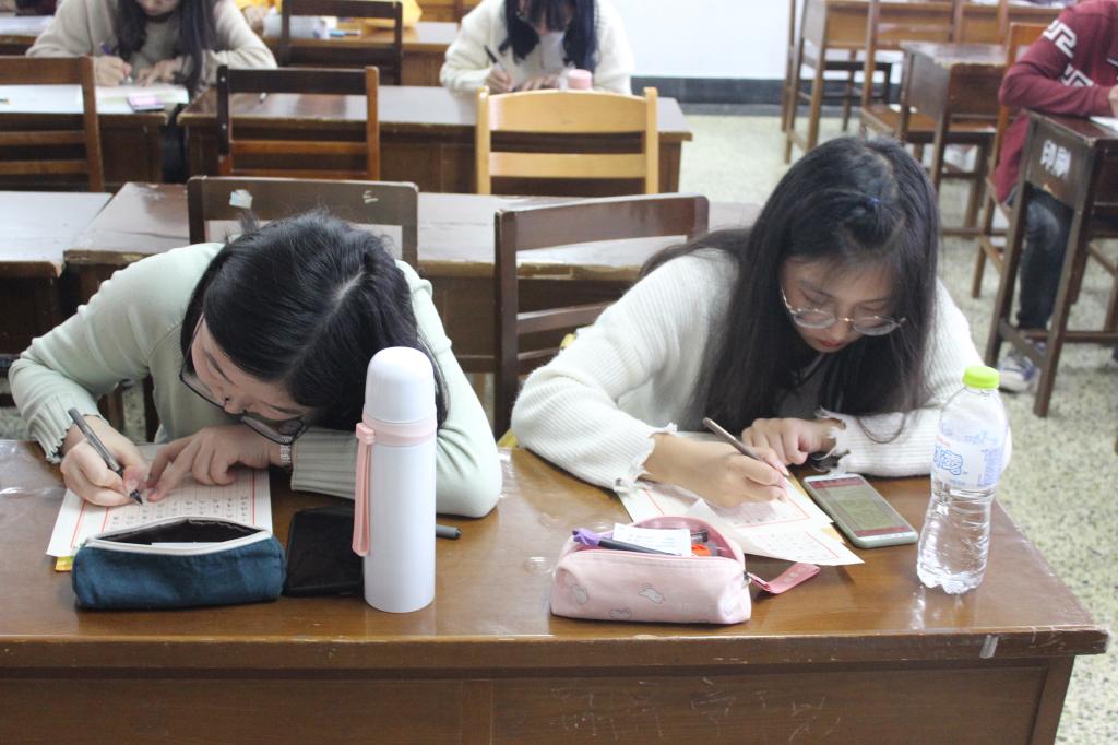 团委学生会承办的“杏坛杯”三笔字大赛于d307、d311、d315教室举行。本次比赛由党委副书记董家忠、董秀玲老师、李凯老师担任评审教师。大二、大三部分学生用参加了本次比赛。