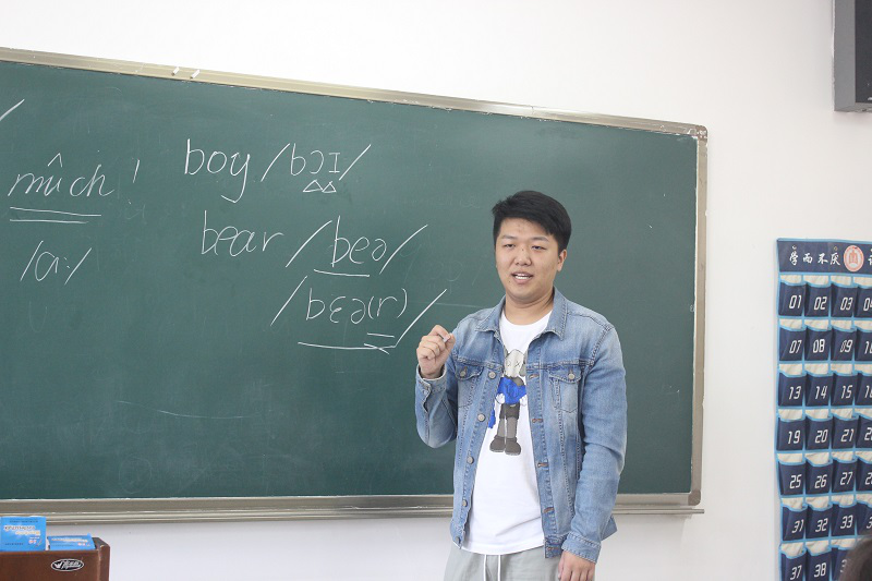 纠音志愿服务队于D教学楼展开纠音活动。