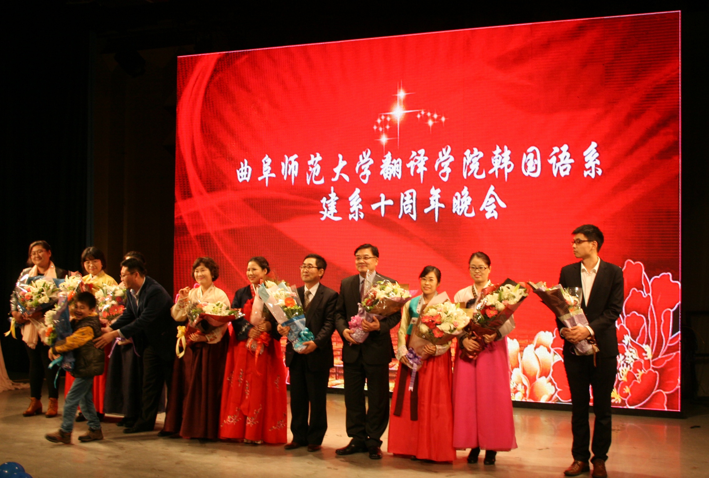 卢卫中,党总支副书记姚圆鑫,副院长夏云,北京对外经济贸易大学、外国语学院院长徐永彬,韩国博尔精出版社社长朴赞益,民族出版社朝鲜语部主任朴文锋,釜山航空青岛代表处总经理曹一柱,海宇国际货运代理(日照)有限公司总经理金炳三,韩国博尔精出版社部长 김려생,国际交流处副处长孙伟,以及韩语系全体师生出席并观看了本次晚会。晚会由盛祝松,刘蓓蓓,刘亚男,贺龙飞主持。