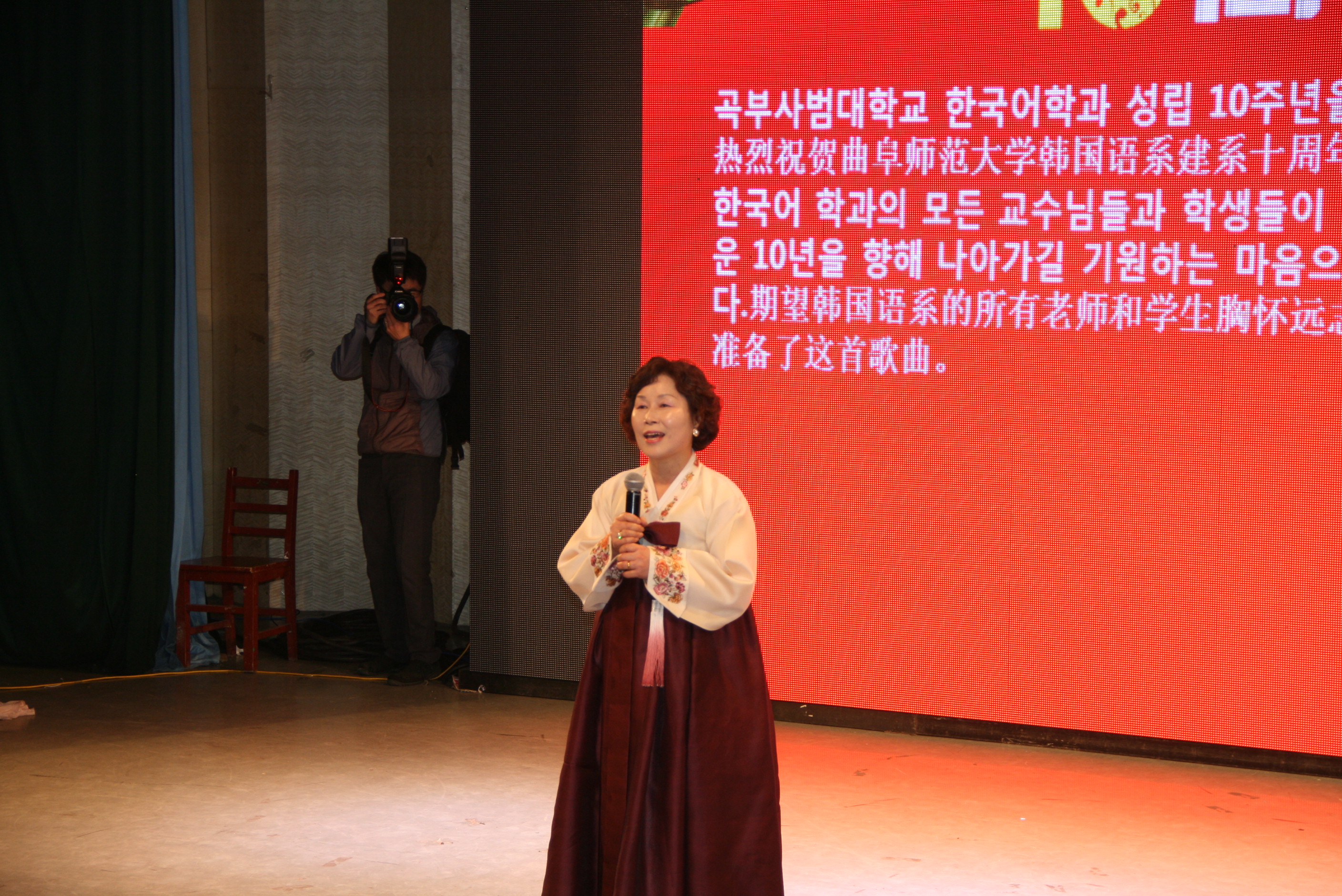 晚会开始前,一段简短的视频首先简单回顾了韩语系十年来的发展历程,并对师资队伍、教学科研、人才培养、实践教学等方面的情况作了介绍。视频中高校领导、毕业生、在校生也都纷纷表达了对韩语系的祝福与期冀。随后对有突出贡献的老师进行了表彰。一曲动人的演唱后,晚会表演正式拉开帷幕。