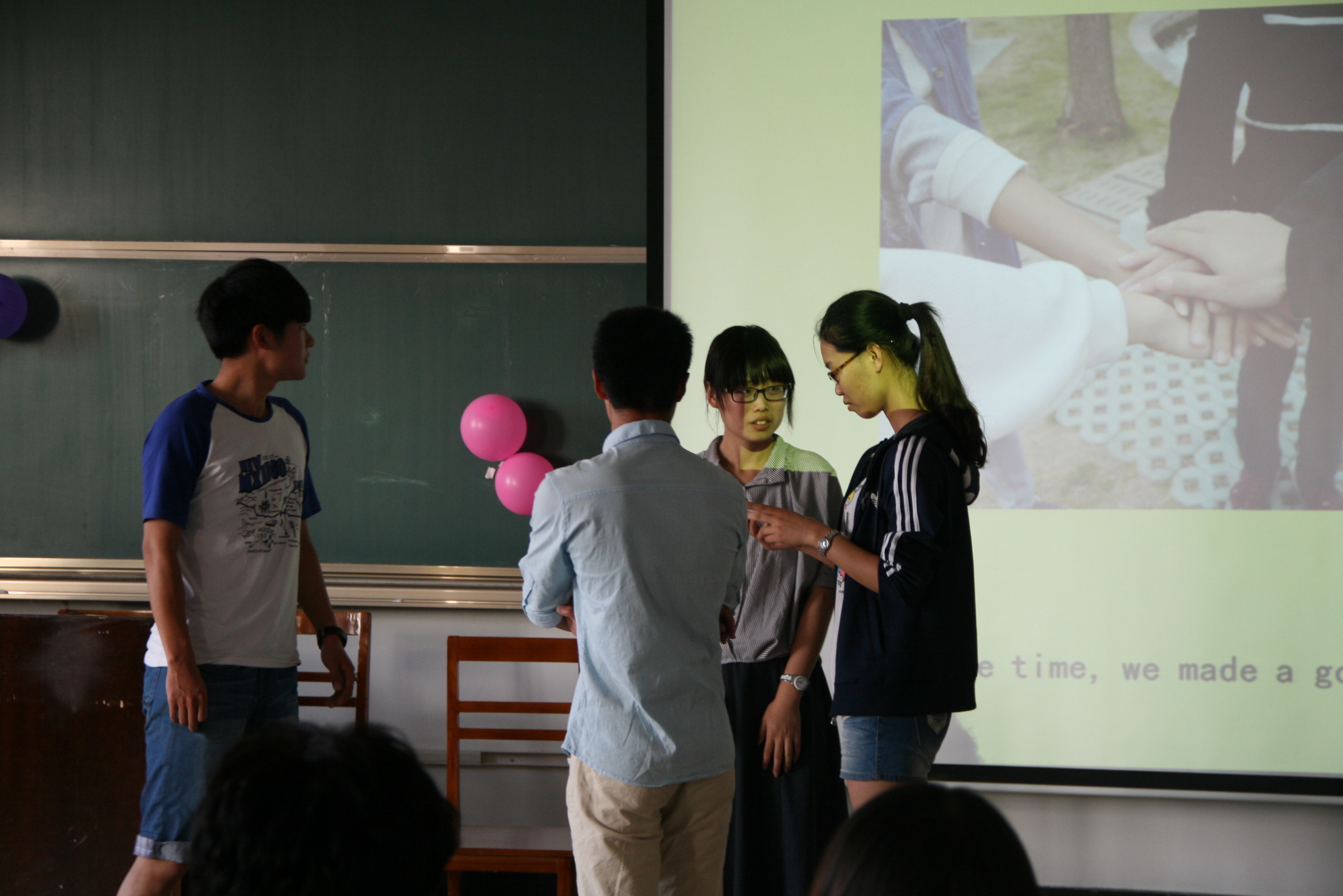 团总支主办、文艺部承办的外文演剧大赛决赛于C709教室成功举行。韩语系的周磊老师、卢正爱老师,外籍教师Mr.PV、清水英之老师出席了本次大赛并担任评委,一同担任评委的还有研究生师姐邓亚南、汤文华。
