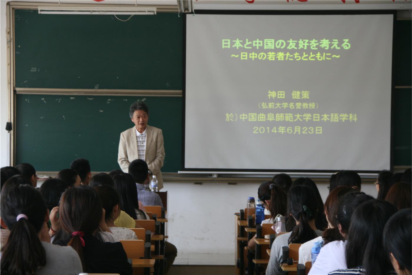 在C314教室举办了以“关于日本和中国友好的思考”为主题的讲座。主讲人是来自日本弘前大学的名誉教授神田健策。日语专业的学生参加了此次讲座。