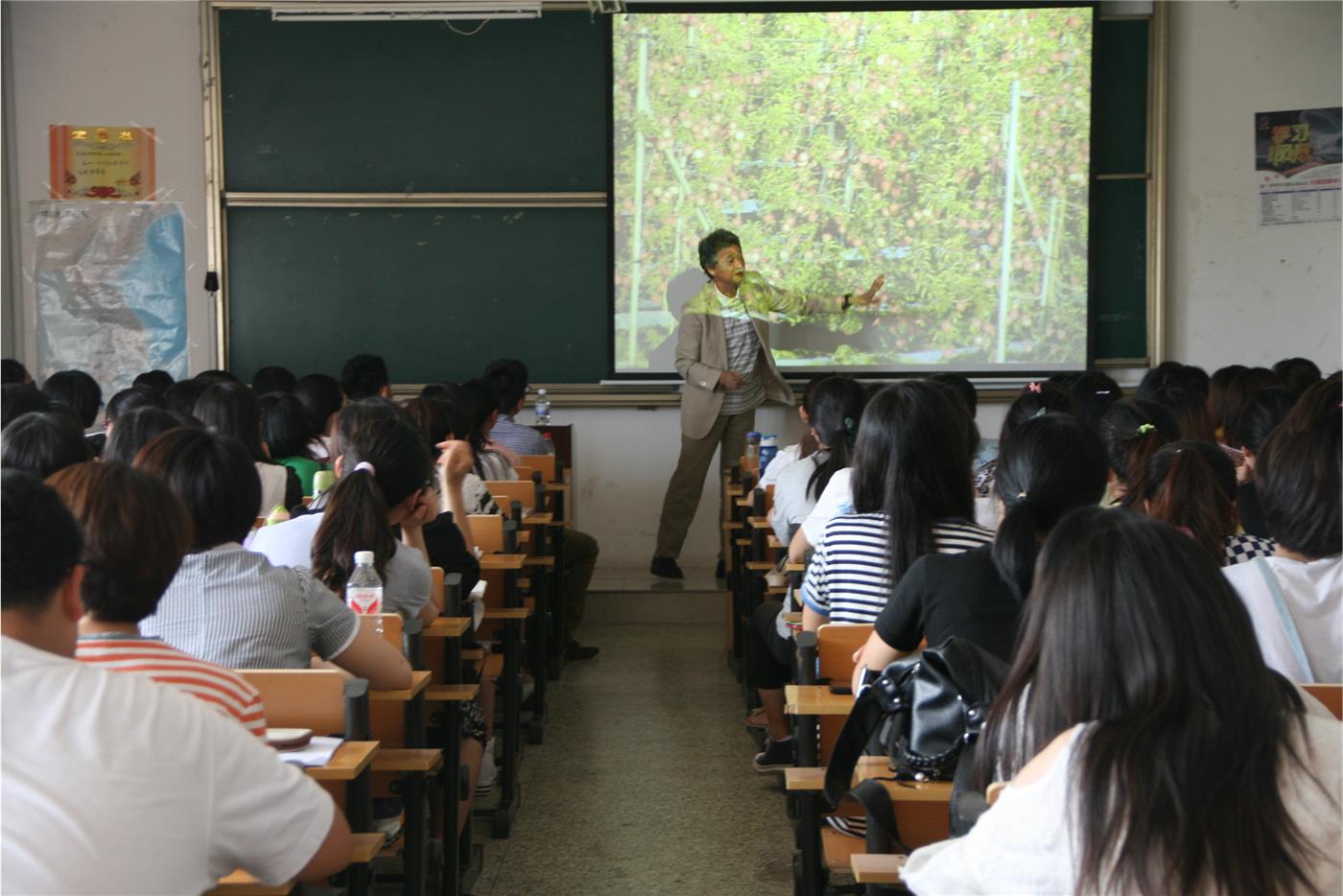 讲座伊始,神田健策教授从四个方面对“关于日本和中国友好的思考”进行了详细的介绍。第一方面,神田健策教授讲述了日本前些年受到的海啸,地震等自然灾害。第二方面,教授讲述了历史上日本对中国的侵略,并详细客观的分析了历史问题和日本军国主义。第三方面,教授详细讲述了中日各方面的交流,鼓励日语专业的同学们去日本留学,并表达了希望中日能够加强交流的美好意愿。第四方面是交流环节。同学们都积极踊跃发言,与神田健策教授客观的讨论了关于钓鱼岛的问题。