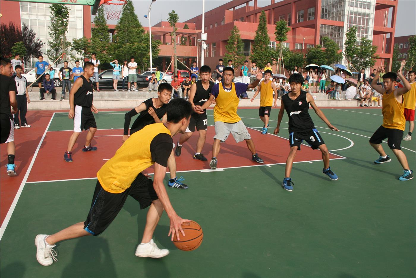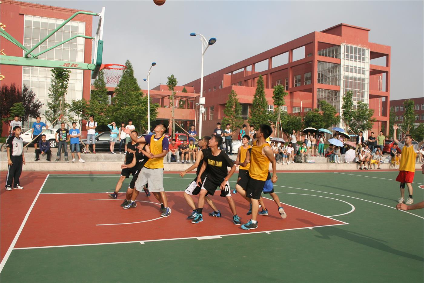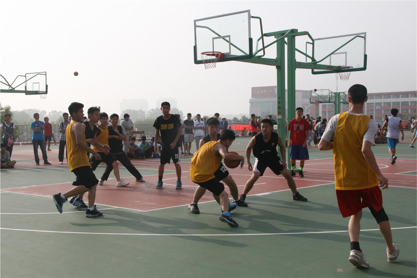 日照校区2014年“毕业杯”篮球赛A组小组赛在我校西操场拉开帷幕。参加比赛的两个队伍为91制片厂