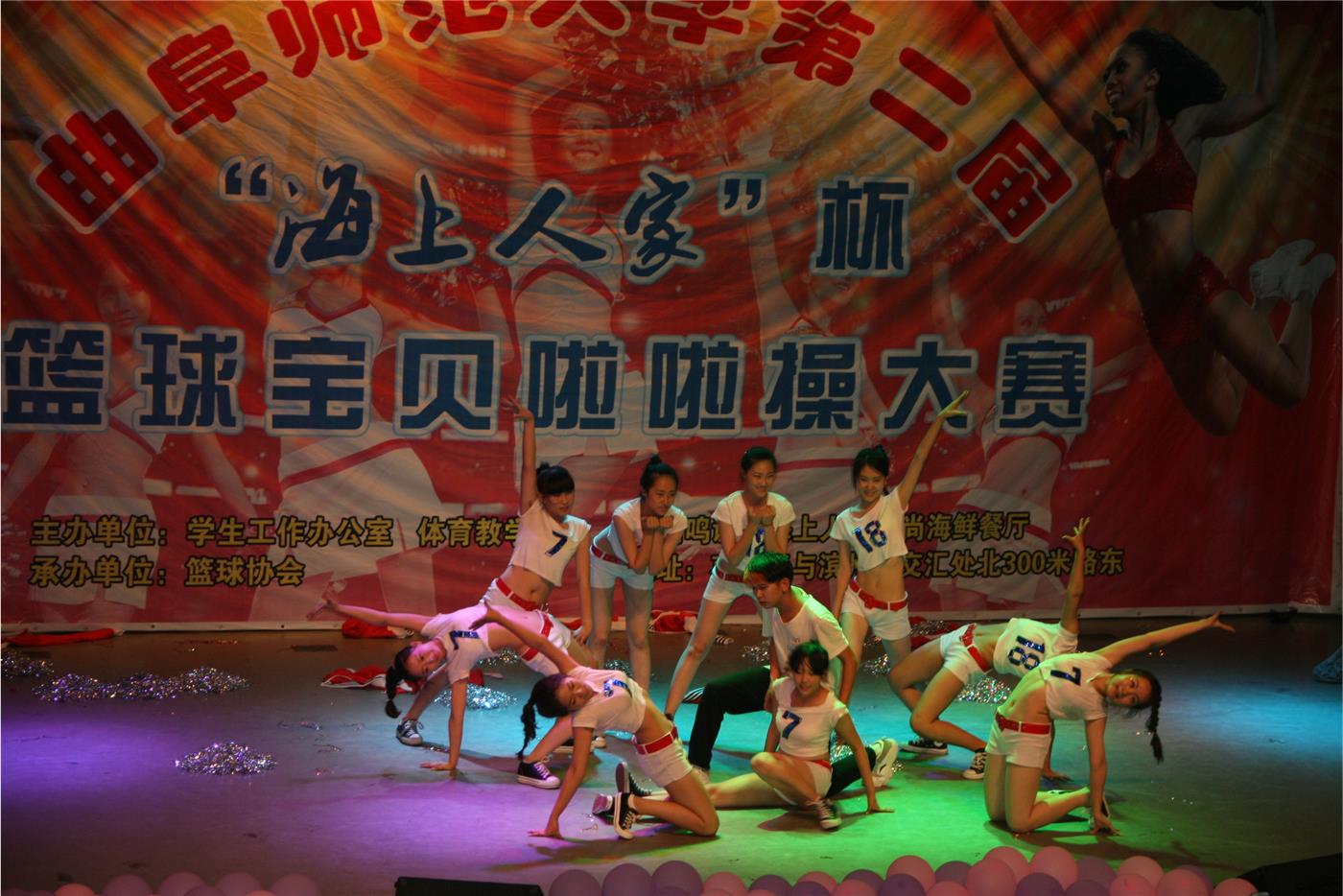 第二届“海上人家”杯篮球宝贝啦啦操大赛在我校音乐厅隆重拉开帷幕。这次大赛由学生工作办公室、体育教学部主办,篮球协会承办。日照校区学生工作办公室主任、机关党总支书记孔令军老师,体育教研部姜付高副教授,后勤保卫办公室副主任王光江老师,日照市全民健身中心董事长薄富美女士,日照市宇启物流有限公司任宇池先生,海上人家时尚海鲜餐厅总经理秦磊先生,地理与旅游学院团总支书记岳峰老师出席了本次大赛。