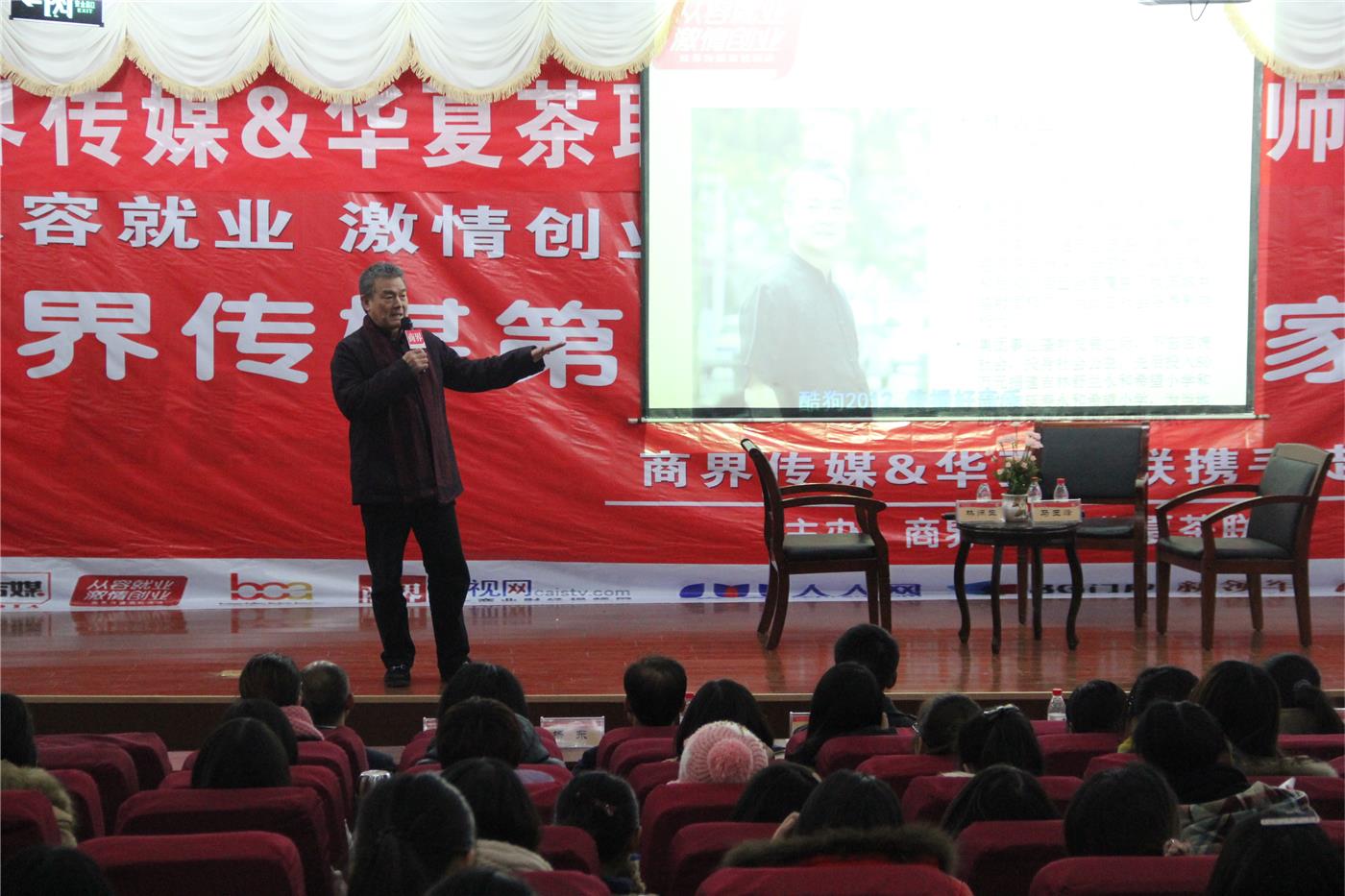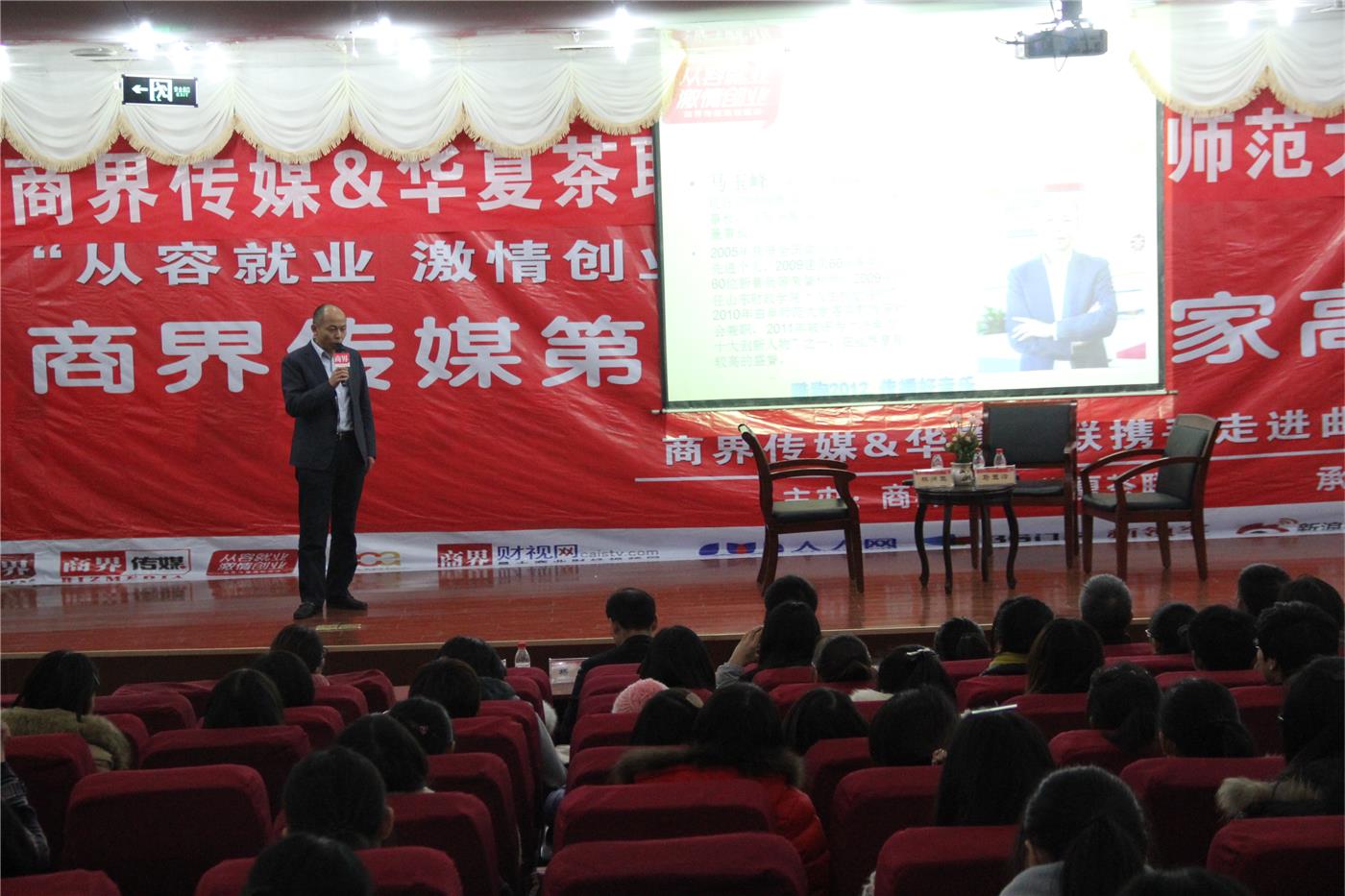 承办的“从容就业•激情创业”商界传媒第八届全国高校巡讲活动在日照校区隆重举行。永和集团董事长林炳生,华夏茶联董事长马玉峰,日照团市委学少权益部部长于涛,以及我校机关党总支书记、学生工作办公室主任孔令军,91制片厂
