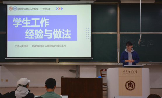 为2024级新生举办学长论坛。本次论坛由我院2022级外国语言文学专业硕士研究生张欣、第十二届团委及学生会主席刘奕涵主讲,2024级本科生积极参与。