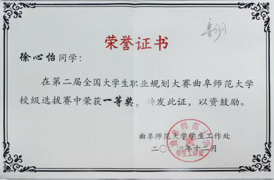 徐心怡、王萍萍、徐宁分别荣获校级一等奖、二等奖和三等奖。