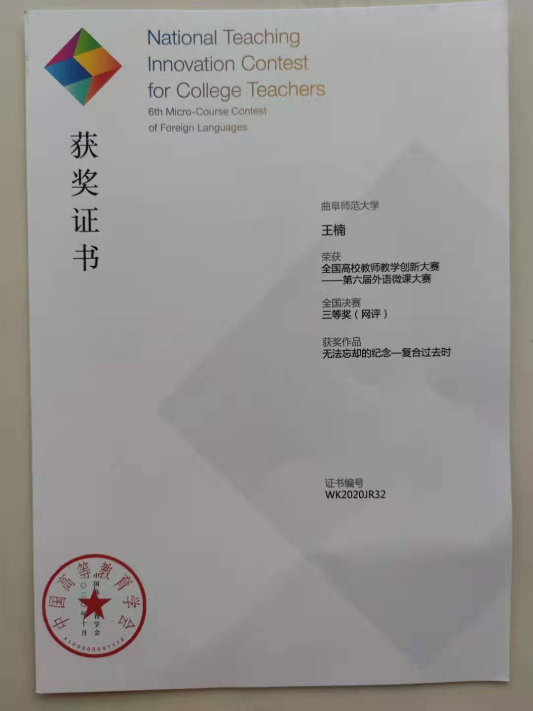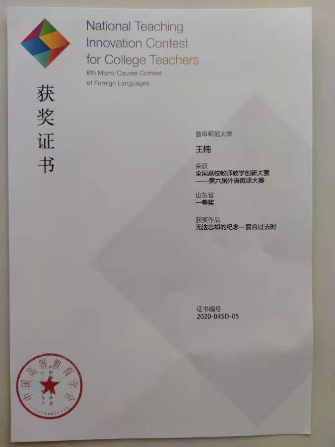 近日,全国高校教师教学创新大赛——第六届外语微课大赛顺利落下帷幕。本次大赛由中国高等教育学会与高等教育出版社和教育部高等学校大学外语教学指导委员会联合举办。我校91制片厂 教师王楠荣获山东省一等奖,全国决赛三等奖。这是王楠老师第二次荣获此殊荣。