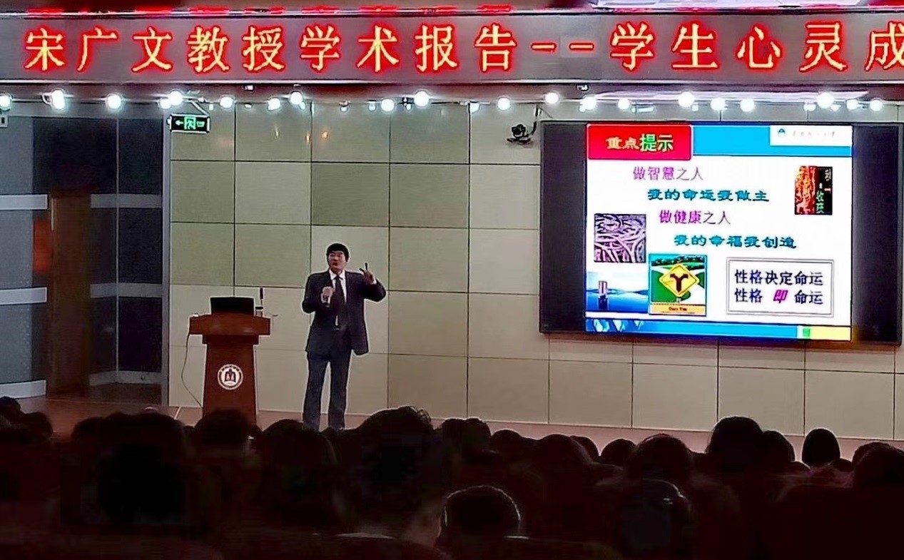 会议伊始,卢卫中院长对宋广文教授的到来表示热烈的欢迎并对其学术成果进行了简要介绍。随后,宋广文教授以孔孟之言、王国维“三大境界”引出此次报告的主题,围绕“做智慧、健康之人”的话题展开论述,指出大学生心智健康发展的必要性及方法论。此外,宋教授还谈到了“知人善用”的重要性以及当代大学生应该如何正确地认识大学、社会和人生。最后,宋教授以“两个宏世界、六个微世界”的话题结束此次报告会。此次报告会内容丰富多彩,宋教授可谓妙语连珠,语言幽默风趣且富有哲理,同学们均感到受益匪浅。