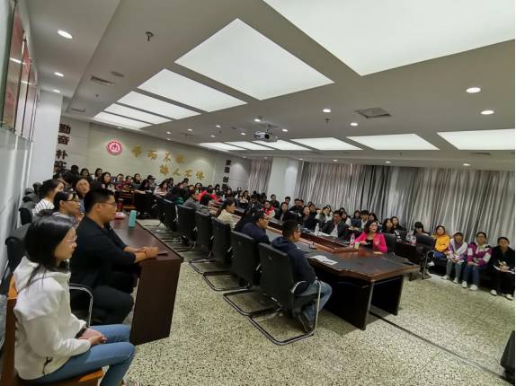 10月24日上午,第二场报告围绕“商务英语学科建设与学术研究”展开。徐教授从宏观和微观两个视角向大家介绍了商务英语学科建设情况、研究现状、研究选题以及投稿方向,分析了毕业生就业情况和当前学科发展的机遇与挑战,倡导商务英语专业老师顺应新时代潮流,强化国际化视野,在教学中突出专业特色,在教研中加强团队建设,积极投稿进而走向科研一线;同时也要求商务英语专业的同学们打好语言功底,培养跨文化交际能力,提高思辨与创新能力,抓住机遇、迎接挑战。