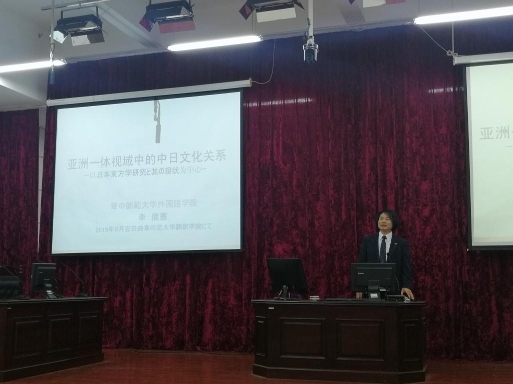 举行,本次报告的主题为“亚洲一体化视域下的中日文化关系”,学院院长卢卫中教授和日语系教师以及全体日语专业本科生研究生聆听了讲座。