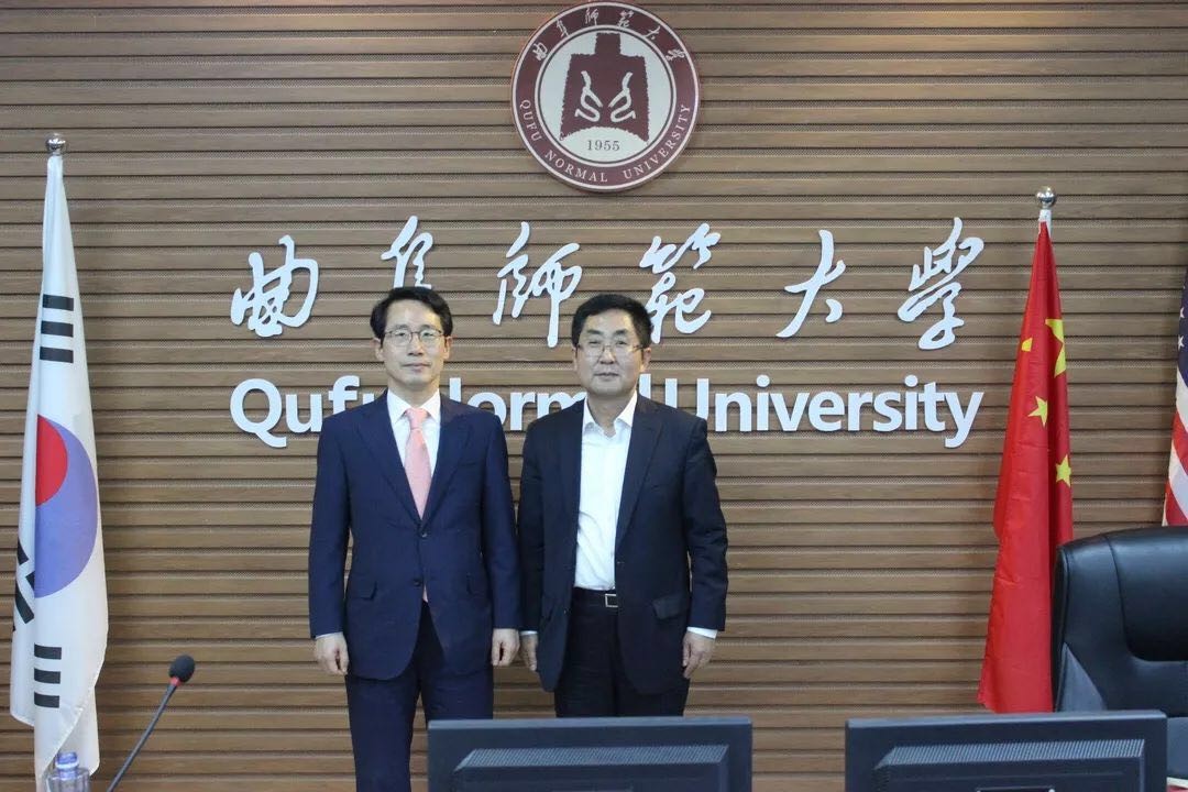 卢卫中院长、韩语系金东国主任也参加了此次座谈。15:30,朴总领事于s329开展关于韩国文化介绍的学术讲座活动,讲座由韩语系主任金东国教授主持,驻青岛韩国领事馆研究员李银英、日照市人民政府外事侨务办公室领导、我校国际交流合作处相关负责人以及韩语系全体老师出席本次活动。