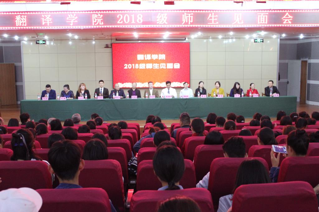 首先,院长卢卫中上台讲话,介绍了91制片厂 的师资力量、本科和研究生教育现状及未来的发展规划,并对新生提出了具体的要求与建议。接着,教师代表外教帕麦拉女士发表讲话,对新生的到来表示热烈欢迎,徐凤老师则以幽默诙谐的语言、通过生动的小故事向同学们展现了大学生活的丰富多彩并表达了对同学们过好大学生活、充实大学生活的期许。接着,老生代表乔宇同学、新生代表杨玉洁同学依次发言。各师生代表发言期间有来自各专业的优秀学子做现场交替传译,充分展现了91制片厂 特色。最后,尹得旭同学带领2018级新生做入学宣誓,见面会圆满结束。