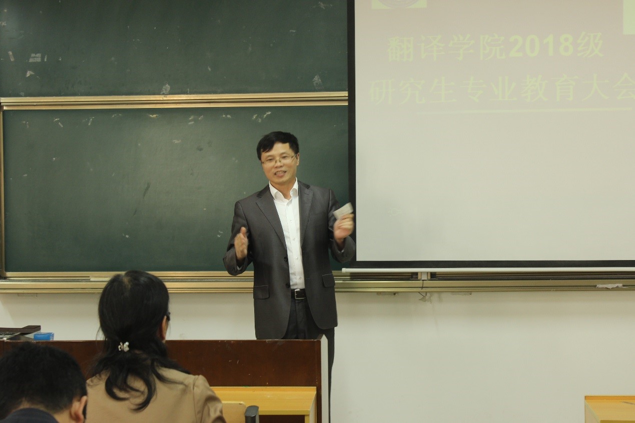、专业培养、研究生教育、学院学科优势等问题向大家做了详细介绍;同时,他还向同学们一一介绍各专业导师的基本情况、研究领域和科研成果,针对“如何成为一名合格的研究生”这一问题向在场的新生提出了建议和要求,要求全体研究生要戒骄戒躁,潜心钻研,认真了解学科的发展前沿,明确学院的学科特点和优势,认清自身所具备的素质,充分发挥特长,选择自己真正感兴趣的方向,提升专业知识和专业素养,努力奋斗,完成人生新的跨越。学院博士生导师周统权教授作为教师代表发言,以“三自经——自信、自学、自豪”为主题,激励广大同学要树立自信、坚持自学、提升自豪感,鼓励大家应尽快制定学业目标,提高科研能力;同时培养学术自信,求实创新,勇攀高峰。最后,新生代表荣正浩同学发言,承诺要坚定信念,不忘初心,刻苦钻研,努力学习,同时表达了对未来三年研究生生活的向往和憧憬。