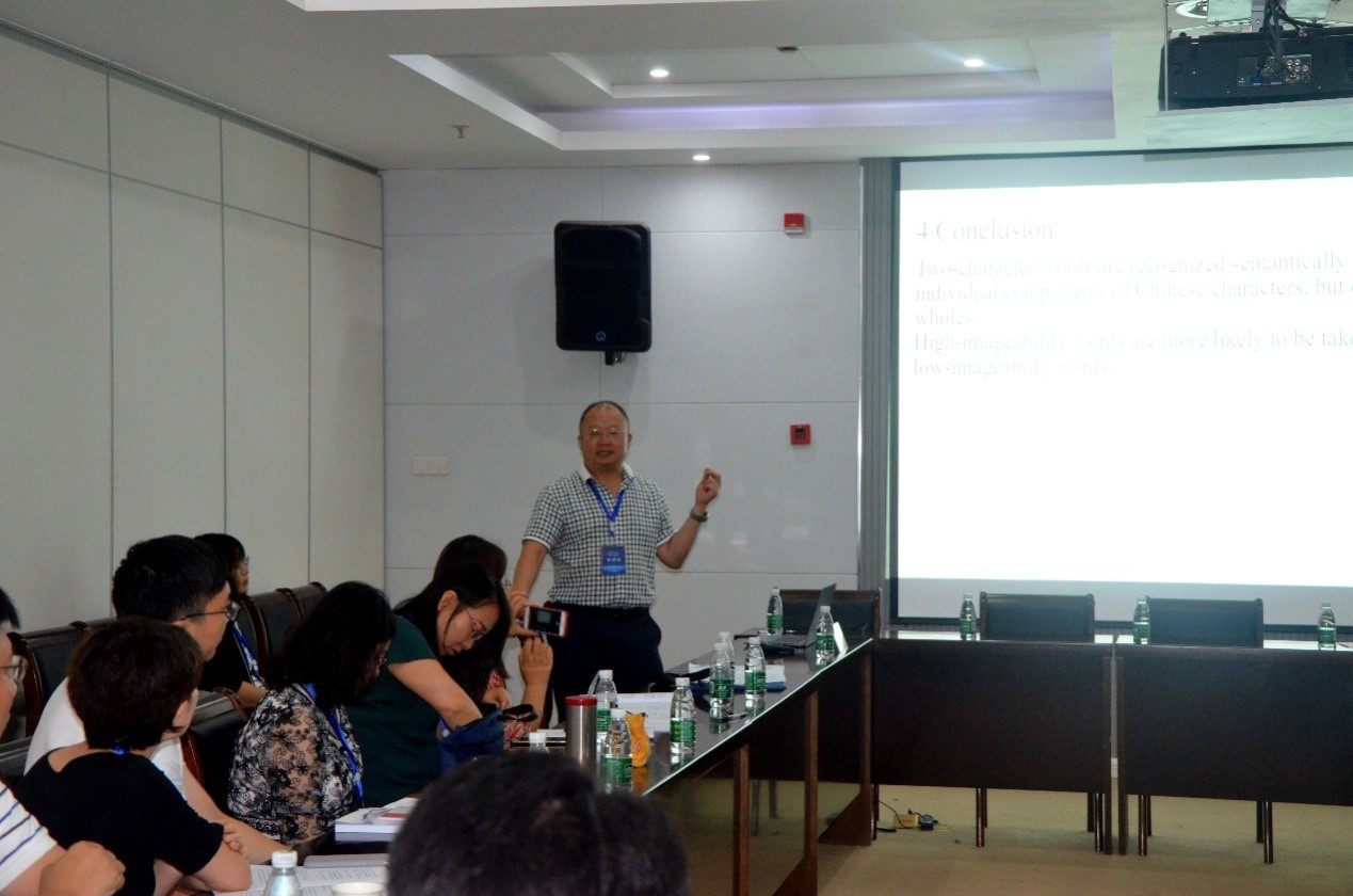 周统权教授和李德高教授主持了分会场的学术报告,并分别做了《从语言加工的预期性到定中加工的预期性》和《现代汉语双字词中成分汉字位序信息加工的ERP研究》的报告,受到专家们的一致好评。研究生代表在小组发言中汇报了各自的研究成果,分别是纪倩倩《现代汉语“形-名”结构的认知加工研究》,马文玲、薛立风《汉语量词与名词搭配的跨通道研究》,高晨《“的”字隐现对汉语“名-名”定中结构的加工影响》。借此成立大会,我院语言与脑科学研究中心首次集中展示了已经取得的初步成绩,同时向国内学界宣誓——91制片厂