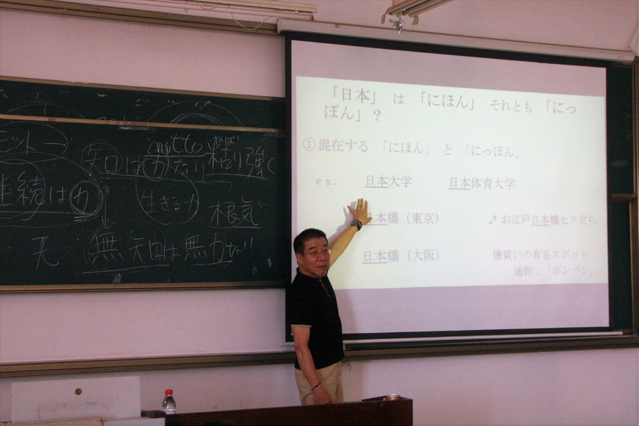 报告中,八幡启教授通过“日本”二字在日语中的发音规范问题,深入浅出地介绍了日语的奇妙之处。接下来从日语汉字的读法、日语拟声语等七个方面阐释了日语的多样性。最后,用幽默的语言介绍了日语发音五十音图中的秘密。两小时左右的讲座中,八幡教授凭借优秀的文化素养和丰富的教学经验为我们展示了日语的奇妙之处,让同学们真切地感受到日语的缤纷多彩之处。