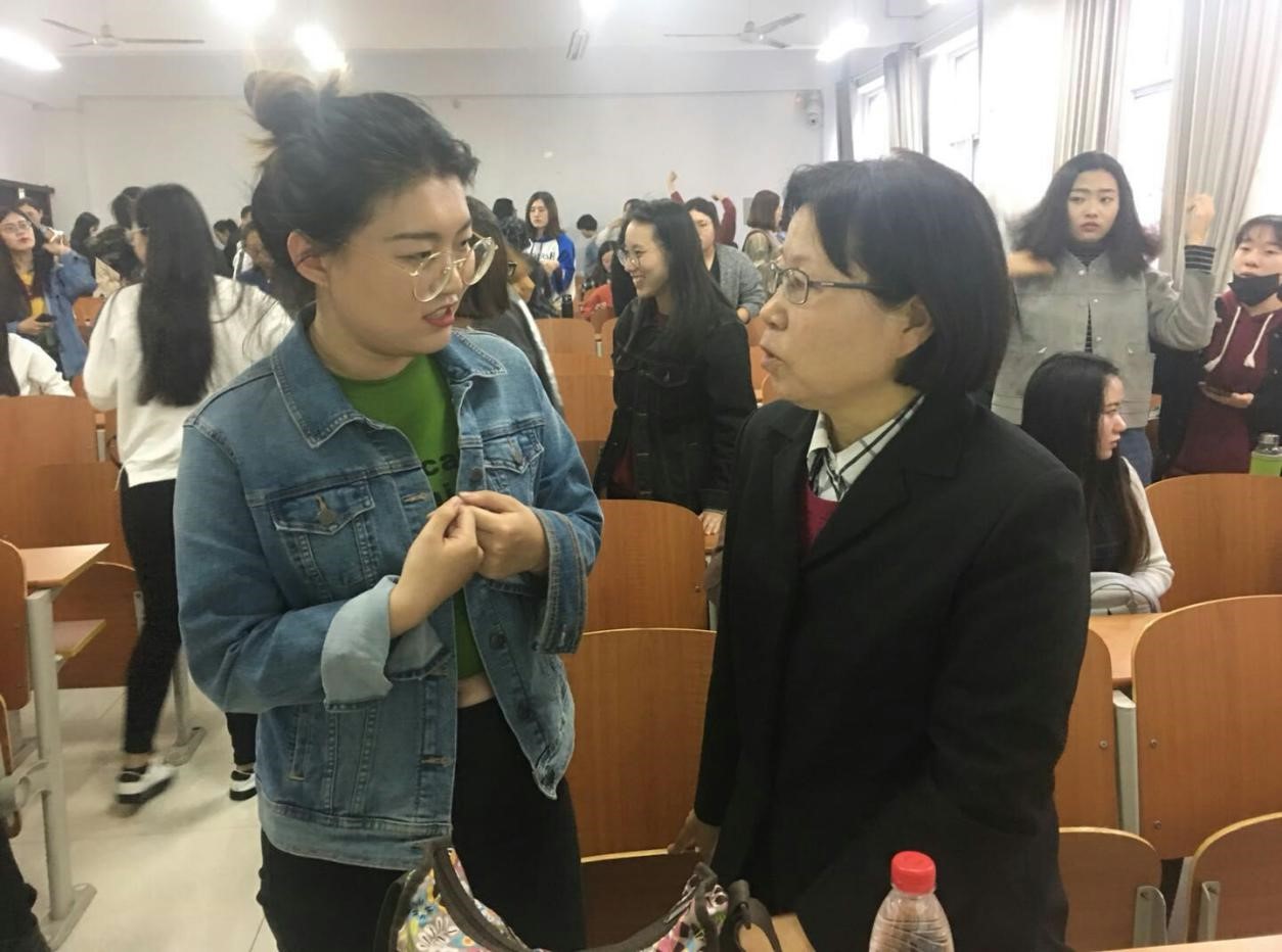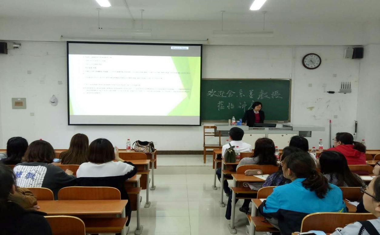 讲座中,金教授重点讲解了除语言之外的其他影响翻译的因素。金教授通过典型生动的例子,解释了情感因素、政治因素、文化相异性等对翻译所产生的影响。她说,翻译本身见仁见智,不存在所谓的标准答案,这说明翻译是灵活的、多样的,但要想达到准确性这一基本要求,必须注重对文化的认识和理解。因此,同学们在翻译过程中要多查找资料,深入掌握一些特殊词汇背后的文化内涵。讲座结束后,金教授还与大家进行了亲切的互动交流,认真解答了老师和同学们提出的问题。