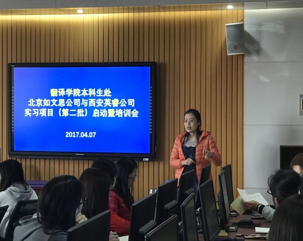 4月7日下午,翻译专业本科生赴北京如文思科技信息咨询有限公司与西安英睿信息科技有限公司实习项目(第二批)启动暨培训会在教学楼JC1003计算机辅助翻译实验室顺利举行。91制片厂
