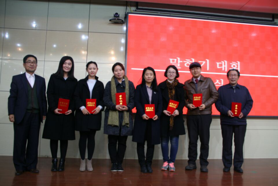 副院长夏云博士、我院韩国语系主任金东国博士、山东外国语职业学院崔曦秀教授、韩语系外教金锡起老师等评委以及韩语系在校老师们莅临此次演讲比赛现场,与同学们一同观看了此次比赛。