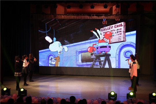 创业导师聘书。紧接着,表演者们你方唱罢我登场,将舞台装点得好不热闹:充满古典韵味的古筝演奏令观众陶醉不已,欢快热烈的舞蹈《盛世欢歌》带起了全场的气氛,钢琴与小提琴的天籁合作引人入胜,历届外文歌曲大赛优秀选手的外文歌联唱展现了翻译学子的青春活力,师生合作的朝鲜族舞蹈《桔梗谣》、日本舞和拉丁舞表演充满了异域风情,外籍教师和国内老师分别献上的歌唱表演则获得观众席阵阵掌声。除了歌舞表演,还有搞笑幽默的日文话剧《还珠格格》,精彩纷呈、还原度极高的《海绵宝宝》配音表演。晚会最后在全体演职人员演唱的《Good time》中落下帷幕。