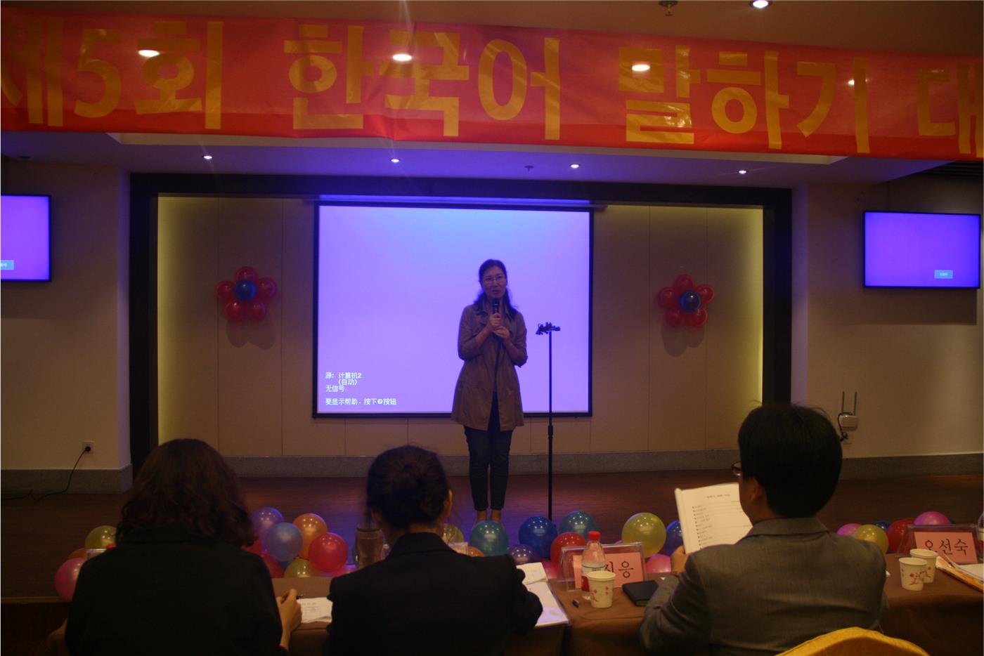 韩国语系主办、韩语协会承办的韩语演讲大赛,在我校儒风酒店2楼会议厅拉开帷幕。科研副院长夏云、韩国语系主任金东国副教授、卢正爱副教授、韩国籍博士金敬姬博士、金明准等出席了本次大赛。来自山东外国语职业学院的五位老师组成评委团。