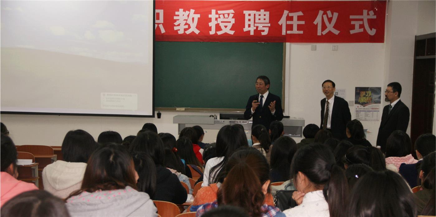 与日本九州共立大学留学交流会在JS107教室隆重举行。莅临本次会议并发表演讲的有华东师范大学兼日本九州共立大学教授沙秀程老师和来自日本九州共立大学的成富勝老师。会议由袁广伟老师担任翻译。