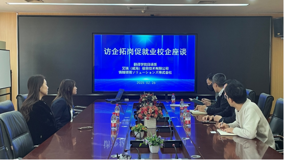 召开访企拓岗促就业校企座谈会。本次会议由学院副院长宋晓凯主持,党委副书记岳峰、日语系主任高远、毕业班辅导员孙杰琼及艾瑞(威海)信息技术有限公司代表参会。