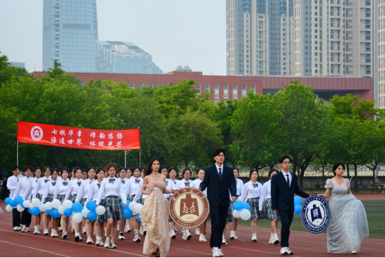 方队步伐整齐、精神抖擞,自信从容地走过主席台,阳光洒在翻译学子的身上,映照出青春的朝气与蓬勃。“七秩华章,译韵悠扬”的口号彰显出翻译学子兴学报国的坚定决心;“语通世界,体绽光芒”凸显出他们的学识抱负与使命担当。