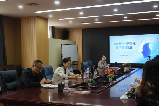 特邀我院杰出校友、北京外国语大学孔蕾教授重返母校,在JC801作了题为“AI时代外语课程教学活动设计”的学术讲座。讲座由院长夏云主持,部分教师及全体英语语言文学专业研究生参加。