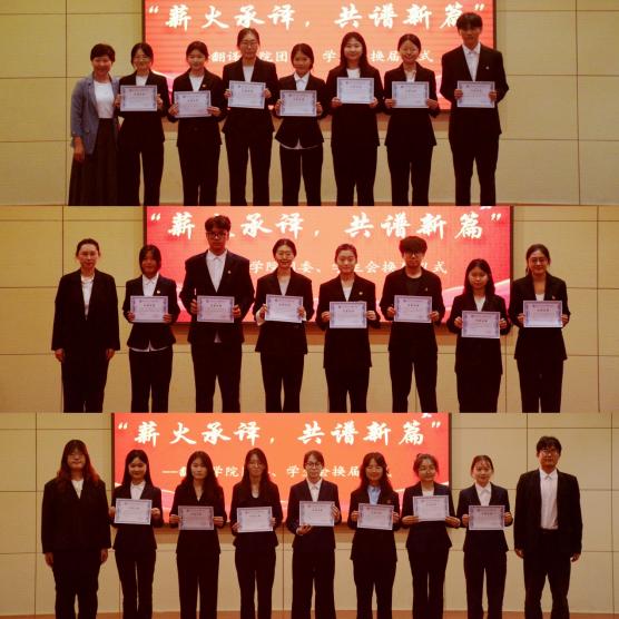 选举过后,第十二届团委、学生会成员为第十三届成员颁发职务胸牌,象征着责任与使命的传递,激励新成员勇担责任,接续奋斗。第十三届学生会副主席高川雲发言,表达了新一届成员的责任担当与未来展望,承诺将以实际行动践行服务宗旨,为学院发展贡献青春力量。最后,辅导员刘明、高欣,研究生会主席卢延超、研究生会团委副书记吴兆琳为第十二届团委、学生会成员颁发任职证明,表彰他们为学院发展作出的贡献。
