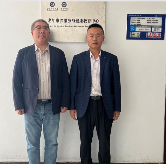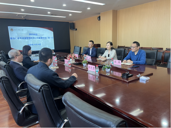 夏云对张广善董事长一行的到来表示热烈欢迎,并对我院的学科建设与发展情况作了介绍。张广善董事长介绍了青岛仁者寿健康管理公司的基本情况及其在老年康养与康复照护研究及技术产品开发等方面取得的成果。座谈环节,双方就老年康复照护领域的最新动态进行了深入交流和探讨,并就老年康养研究成果转化、康复照护教材开发、实习基地共享等事宜达成了合作意向。