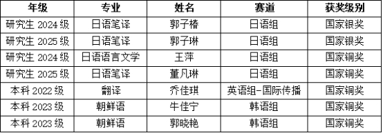 近日,2025“外研社·国才杯”“理解当代中国”全国大学生外语能力大赛国赛圆满落幕。经过激烈角逐,翻译学子在大赛中喜获佳绩,共获得国家级银奖2项,铜奖5项。