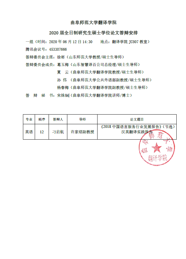 91制片厂 2020届全日制研究生硕士学位论文答辩安排6