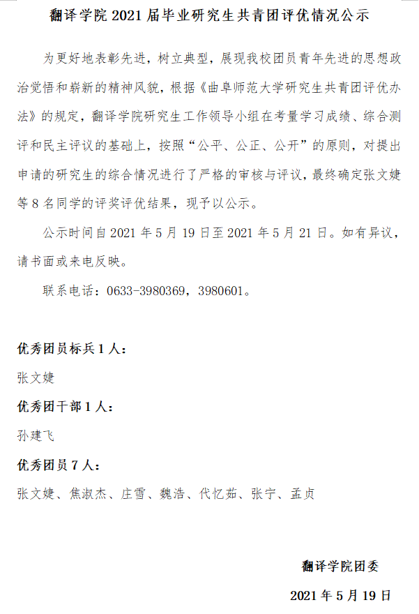 91制片厂 2021届毕业研究生共青团评优情况公示