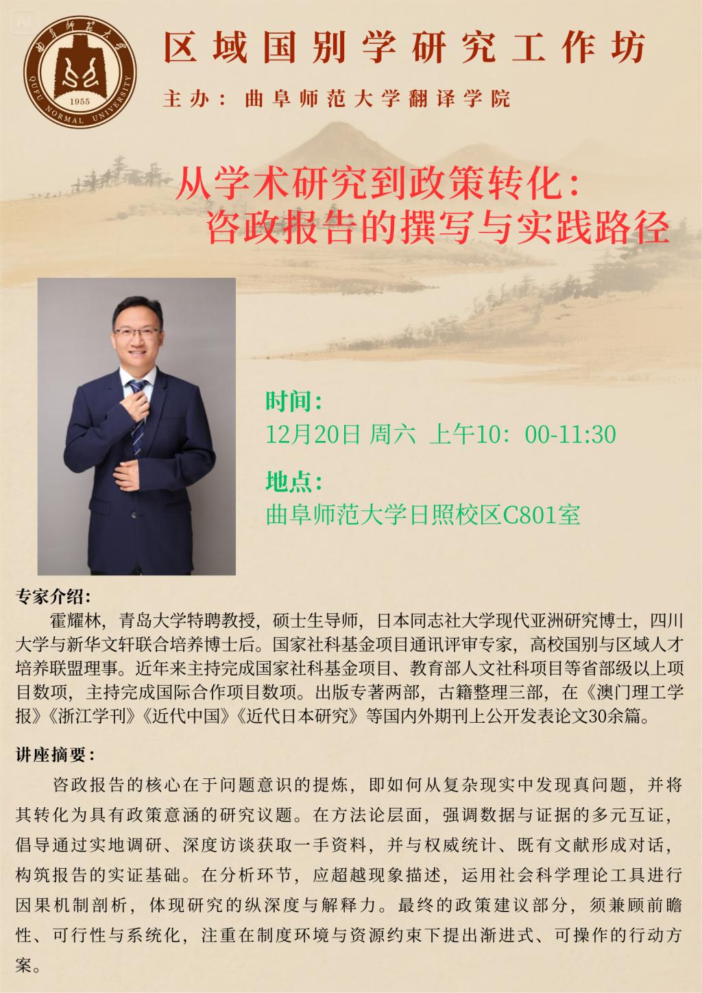 区域国别学研究工作坊——从学术研究到政策转化:咨政报告的撰写与实践路径